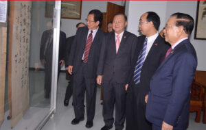 陈绍扬代主席及徐惠深副主席热情陪同来宾参观潮州会馆子彬堂,参观三楼文物馆及图书馆,陈绍扬代主席详细向参访团介绍泰国潮州会馆的历史和发展历程,介绍旅泰潮人的奋斗史,任义生总领事认真欣赏文物馆中收藏的具有历史价值的文物及书画作品,珍贵藏书,赞扬潮州会馆在维护和弘扬中华文化方面做得非常好。