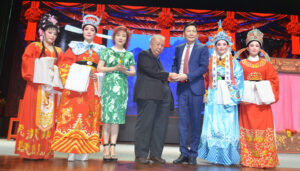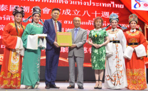 图五:李光隆主席奖赏剧团十万铢,由郭明城团长接领,