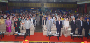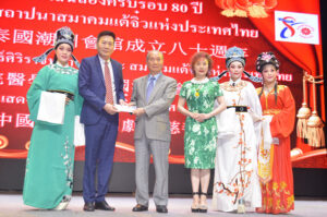 五月七日晚七时演出潮剧《玉箭奇缘》,为介寿堂慈善会专场义演,恭请介寿堂慈善会主席李光隆,泰国文化部副部长查薇拉·甲社顺通博士,潮州会馆主席黄迨光博士,泰中促进投资贸易商会主席李绍祝,潮州会馆副主席张荣炳,介寿堂慈善会副主席:陈水龙、马永绥,秘书郑定沛,财政徐金亮联合为专场义演剪彩,演出正式开始之前,全体肃立,奏颂圣歌。