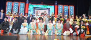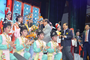 图十一:演出精彩成功,黄迨光主席登台向演员献花致贺。