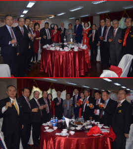 民,张源晋,刘汉明,张仲威,蔡衍孝,陈焯辉,王秋松等互相敬酒。