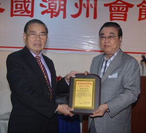 图十二:黄迨光主席向澄海同乡会赠送荣誉奖盾,由许继荣永远名誉理事长接