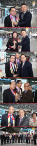 图一:中国驻泰大使馆侨务参赞张东浩阁下为黄迨光主席挂花串送行祝福。