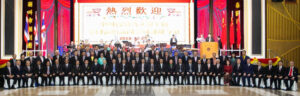 十二月五日(星期三)晚六時,中國僑聯主席萬立駿暨代表團於晚六時抵達泰國潮州會館,潮館轄下四所學校學生列隊歡迎,黃迨光主席暨諸位副主席熱情歡迎萬立駿主席率團蒞訪,賓主在子彬大禮堂合影留念。
