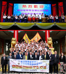 新加坡華聲音樂社暨武吉知馬修德善堂赴泰國曼谷文化交流團在榮譽領隊成漢通、榮譽團長拿督斯裏張建安永久榮譽社長、團長陳運明社長的率領下,於2019年5月10日至13日蒞泰進行訪問及文化藝術交流活動,該團於5月11日下午五時訪問泰國潮州會館,泰國潮州會館主席黃迨光博士、副主席:陳紹揚、王睦良、張榮炳、夢莉女士、陳萬平、廖漢明、蔣應初、蕭鴻洽、徐光輝及諸位常執委熱情歡迎並在子彬堂設晚宴招待交流團,黃迨光主席向新加坡華聲音樂社蒞臨訪問發表熱情洋溢的歡迎詞,祝願交流團來泰訪問取得圓滿成功,弘揚潮樂優秀文化。賓主共進晚餐,親切交流,共同欣賞新加坡華聲音樂社表演“潮州大鑼鼓”。