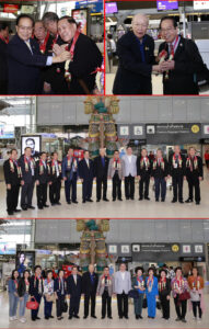 黃迨光主席率領泰國潮州會館代表團赴新西蘭 全團二十人將出席第二十屆國際潮團聯誼年會 副主席張朝江陳紹揚許鎮南赴機場為代表團掛花送行劉振稟徐惠深陳燦泰李創福李振來陸少濱等隨團啟程