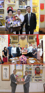 圖二:泰國溫州商會會長鄭炳克一行向黃迨光主席拜年,與潮館首長:馬龍輝,