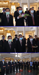 图一:泰国潮州会馆首长举行公祭,主祭黄迨光博士敬献鲜花。