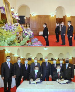 欣逢十世皇皇后素蒂拉殿下懿寿,泰国政府及各地官方机构、民间团体均表达对皇后殿下的爱戴和崇敬之情,六月三日自早上八时开始,晋宫签名恭祝懿寿的各官方单位及民间团体代表陆续抵达大皇宫,吉庆祥瑞。泰国潮州会馆主席黄迨光博士,副主席徐惠深,副主席徐光辉,常务秘书陆少滨,常务稽核陈鸿辉,执委李耀深,执委周桂扬敬向皇后殿下懿像献花致敬并签名恭祝懿寿,感戴泰国皇室对旅泰华人的庇荫和关爱,一视同仁,让泰国华侨华人在泰国安定祥和的土地上安居乐业,与泰国民众和睦相处。