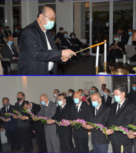 图三:恭请泰国北部华校联谊会主席陈汉展举行灵前明烛晋香。