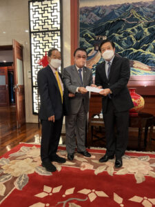 左起:准主席徐惠深、主席黄迨光博士、韩志强大使阁下。