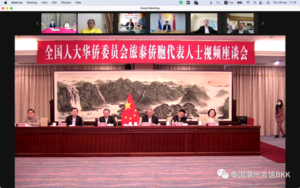 2022年4月28日,中国全国人大华侨委员会召开旅泰侨胞代表人士视频座谈会,全国人大常委会委员、华侨委员会主任委员王光亚,副主任委员贾廷安、董中原、郭雷、曹鸿鸣,中国驻泰国大使馆侨务参赞刘敬师等出席在线视频会议。