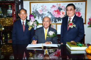 泰國潮州會館第四十、四十一屆主席暨執委會交卸就職典禮,擇吉於二O二二年五月廿九日(星期日)上午十時,在曼谷谷莊仁集路該會館子彬大禮堂隆重舉行。大會主席、該會館永遠名譽主席李光隆致開會詞並主持儀式,樞密院大臣陳國光博士,中華人民共和國駐泰王國特命全權大使韓志強,泰國中華總商會主席林楚欽,該會館永遠名譽主席陳漢士為見證,該會館第四十屆主席黃迨光博士把印信和財務表冊移交予新屆徐惠深主席,儀式隆重,場面熱烈,喜慶洋溢,親切和諧,譜寫了泰國潮州會館會務發展新篇章。