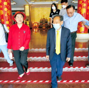【潮州會館訊】泰國新前途黨黨魁他那通.莊亮倫吉之令慈,泰三密集團總裁,著名僑領,大企業家莊陳阮貞女士,世界黃氏宗親總會永遠名譽主席,泰華著名僑領,知名大企業家黃大慶先生,分別於公元2022年6月22日上午,專誠前往泰國潮州會館拜會徐惠深主席。徐惠深主席在公室熱情地接待兩位泰華先進,莊陳阮貞女士,黃大慶二位著名僑領首先誠摯祝賀徐惠深先生高票當選榮任潮館主席,祝賀徐主席領導新團隊砥礪奮進,不忘初心,帶領潮館常執委把會務發揚光大。徐惠深主席愉快地接受祝賀,他表示二位先進包括廣大旅泰華人為泰國經濟建設貢獻良多,對中泰一家親,弘揚中華文化,奉獻社會公益慈善事業多有建樹,希望二位先進多關注,支持潮館會務發展。二位先進表示潮館是旅泰華人共同精神家園,將盡綿力支持,徐惠深主席並帶領二位先進參觀了潮館辦公環境。