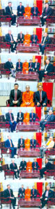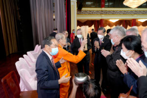誦經畢,徐惠深主席,名譽主席許家偉,榮譽法律顧問李朝文,澤沙拉.阿律乍里,副主席許鎮南,李先棟,徐光輝,楊潮雄,蕭俊傑,黃烈凱,孫石波,徐位合,鍾木強,徐金亮。常務秘書李振欽,李振來,倪武龍,鄭惠中,鄭石葵,鄭定沛,徐永添,陳鑫哲,李源潮,周金順,周振炎,陳焯輝,蔡衍孝,林創光,常務財政鄭雄熊,廖令金,陳鴻銳,洪芳茂,王創業,郭明忠,常務稽核陳鴻輝,廖翠珍,蔡麗珠,陳曙華,常務組織蔡德釗,常務交際曾豪海,王偉文,鍾金炳,常務教育吳政孝,,常務發展陳榮新,執委吳懷智等先後向仁得上師暨諸華宗高僧獻袈裟,佛品。儀式上仁得上師在徐惠深主席陪同下潮館常執委灑法水賜平安。