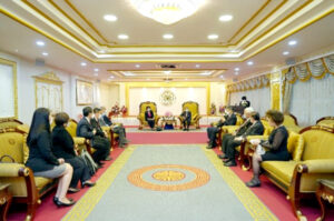 2022年7月1日上午十點半,泰國潮州會館徐惠深主席在二樓會客廳接見了泰國雲南會館張時美理事長,常務副理事長茶崇昌,副理事長劉德明、李祖耀、楊燕、葉玉華及顧問屈經富等。 會見開場,徐惠深主席祝賀張時美當選為理事長,祝福雲南會館會務昌隆,雙方今後的合作更加密切順暢,張時美致答詞對徐主席撥冗接見表示感謝,希望給予支持和鼓勵,潮館副主席徐光輝在自由發言時表示,都是九屬兄弟會館,一向有著良好的關係,將來會有更多的機會互相合作,茶崇昌副理事長發言推崇潮館為九屬龍頭老大,為泰華社會做出了偉大的貢獻,泰國雲南會館也得到了歷屆潮館主席的大力支持,今後將追隨九屬會館發展方向前進,他說明第29屆理事長選舉是按照註冊章程執行,相信會有新的氣象,新館建設預計年底竣工,屆時將邀請潮館諸位首長蒞臨開幕儀式。最後,張時美理事長向徐主席贈送水果禮籃表示敬意,徐主席回贈各出席成員禮物一袋,全體首長合影留念,圓滿完成了這次親善訪問。潮館出席首長還有副主席蕭鴻洽、徐光輝、楊潮雄、蕭俊傑、常務秘書黃玉枝等。