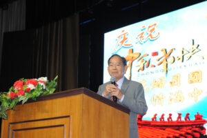 今晚燈火輝煌,明月高照,我們大家高高興興地歡聚在潮州會館子彬堂,共同慶祝中華民族傳統中秋佳節,首先我代表泰國潮州會館全體同仁,向大家致以親切的節日問候和美好的祝福,祝大家身心康樂,萬事勝意,合家團圓!俗話說:人逢喜事精神爽,月到中秋分外明。今晚,我們一起歡渡節日,延續流傳千古的中秋佳話,弘揚源遠流長的傳統美德,載歌載舞,品月餅,嘗佳餚,共度美好良宵。今晚的慶祝宴會是本會館第四十一屆執委會首次舉辦的聯歡晚會,本次晚会藉以弘揚中華民族的優良傳統,增進兄弟會館以及各縣同鄉會的友誼與合作,以文娛活動方式,促進大家身心健康,借此機會,本人衷心邀請在座諸位,登臺高歌獻唱,雅興共賞。