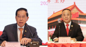 中國共產黨第二十次全國代表大會剛剛圓滿閉幕之際,泰國中華總商會、泰國潮州會館聯合泰華各界,第一時間對中共二十大勝利召開表達祝賀,於2022年10月23日下午,在中總光華堂隆重舉辦“熱烈祝賀中共二十大勝利召開”座談會,暢談感受、交流心聲,泰國中華總商會暨各行業公會聯誼會、各商協會首長,泰國潮州會館暨九屬十同鄉會首長、泰華各界僑領、代表二百多位出席座談會,場面隆重熱烈。會前,與會領導、代表共同錄製視頻,熱烈祝賀中共二十大勝利召開!