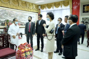 10月27下午1時,泰國福建會館理事長蘇承智,副理事長兼秘書長林慧,副理事長蔡上新、蔡孝興、陳俞龍、林楊剛丶林少懷等一行拜訪潮館徐惠深主席,蘇承智理事長首先向徐主席介紹了泰國福建會館的會務發展近況,感謝徐主席等潮館領導長期以來對福建會館和在泰褔建籍僑胞鄉親的支持和幫助,盛情邀請徐惠深主席暨潮館領導,蒞臨出席12月10日「泰國福建會館祝賀成立110周年,第69屆理事會就職儀式暨成立泰國福建社團聯誼總會」系列慶典活動,並請徐主席為泰國福建會館致賀詞,為泰國福建僑胞送上鼓勵和祝福。