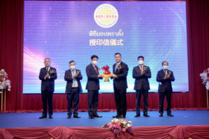 中華人民共和國駐泰王國大使館僑務參贊劉敬師、泰國中華總商會主席林楚欽、泰國潮州會館主席徐惠深、大會主席,泰國華人青年商會永遠名譽會長李桂雄、泰同華人青年商會名譽會長羅炳光等上台共同主持授印信儀式並致詞祝賀。李嘉淳會長代表第十二屆執委會致謝詞。