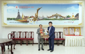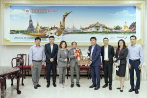 | 中國人民銀行泰國分行副行長吳琳 暨營業部總經理支恒,營業部客戶經理Nilobol Potharam ,個人金融部副總經理鄭卓斌,資金部交易員朱光偉等一行,於西元二00二年十二月廿六日下午蒞訪泰國潮州會館,向徐惠深主席等拜年。賓主就泰國金融格局交流了意見,就整合資源加強合作達成共識,並互祝新一年工作順利。 |