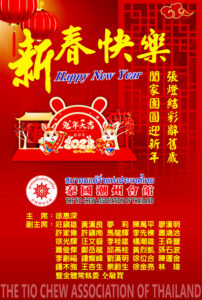 我代表泰國潮州會館暨全體理事,謹向全世界華人泰國僑胞致以最誠摯的問候和衷心的祝福。