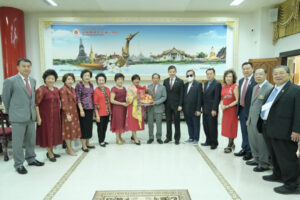 2566年2月2日上午11.00時,泰國潮州會館主席徐惠深、副主席徐光輝、鍾燦峰、劉漢明、林瑋,常務秘書鄭定沛、黃玉枝,常務財理王慶招,參加招待泰華婦女聯合會拜年團,來潮州會館拜訪徐主席和全體理事的活動照片,徐惠深主席與楊玉秀主席,互祝新春快樂萬事如意,泰華婦女聯合會,除了拜年還在潮館租下場地辦聯歡會,兩位主席互送新春禮品-大吉,之後,歡迎議式也圓滿結束!