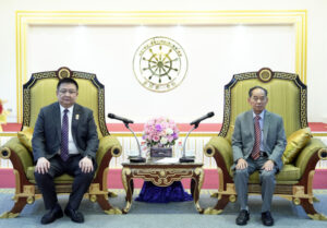 2023年6月26日上午十時,北京潮商會、北京潮商青年委員會第十一屆國際潮青聯誼年會籌委會聯合代表團在北京潮商會執行會長周建軒、第十一屆國際潮青聯誼年會大會主席陳思宇的帶領下訪問泰國潮州會館,受到泰國潮州會館主席徐惠深及副主席:蕭俊傑丶邱燕桂女士丶黃烈凱丶孫石波丶李創褔丶鍾燦峰博士、林瑋,諸位常執委的熱情歡迎並舉行座談交流。徐惠深主席向北京潮商會代表團蒞訪致歡迎詞,並祝賀北京潮商會成功主辦將於今年十一月十三日至十五日在北京舉辦第十一屆國際潮青聯誼年會。