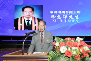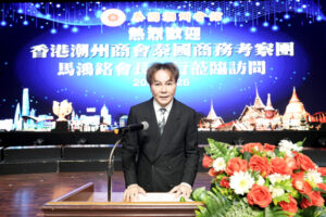 徐惠深主席致歡迎詞:尊敬的香港潮州商會會長馬鴻銘先生、尊敬的香港潮州商會泰國商務考察團諸位首長、女士們、先生們大家好!首先,本人謹代表泰國潮州會館全體常執委對諸位的蒞臨表示熱烈的歡迎。馬鴻銘會長暨考察團的到來,使泰國潮州會館蓬蓽生輝。香港潮州商會歷史悠久,是香港最有代表性的潮籍工商社團。我們常說,有潮水的地方就有潮汕人,有錢賺的地方就有潮商。全世界的潮汕鄉親眾多,我們的先賢在五湖四海落地生根、自強不息、團結奮進。如果說香港潮州商會是香港一百多萬潮籍鄉親的避風港,潮州會館就是我們全體潮籍鄉親的家。貴會的宗旨是:服務社會、興學育才、扶貧救災。這與泰國潮州會館的宗旨不謀而合,希望香港潮州商會的諸位鄉親多來潮館訪問交流,促進鄉誼、增進感情,共同為兩地社會做出貢獻!最後,祝香港潮州商會會務蓬勃發展!祝諸位身體健康、財源廣進、闔家幸福。謝謝大家!
