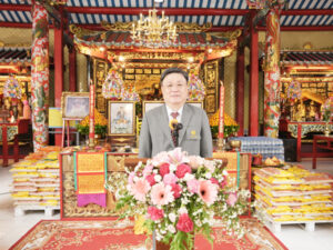 高僧誦經儀式畢,恭精潮官代主席許鎮南主持盂蘭勝會時致同:尊敬的各位首長、各位嘉賓善信,大家好!今天,泰國潮州會館主席徐惠深因有要務未克出席,特委派本人前來主持盂蘭勝會儀式,盂蘭勝會是施陰濟陽,普渡孤魂的傳統習俗,大本頭公廟每年都舉辦盂蘭騰會,諸位仁翁善長粉粉捐贈善款物品等,同結善緣。嵩越大本頭公廟連續多年榮獲泰國內政部政務廳頒發之中型廟宇國家冠軍、標凖廟宇、曼谷市廟宇侵秀管理獎,是曼谷市的一個旅遊景點,讓遊客及年輕人參觀大本頭公廟的中國傳統建築藝術風格。本年度各界善信的捐贈有955000及334323銖物資,合共128萬9323銖,購買大米、食品、日用品等分發予慈善機構,包括:三攀他翁縣基層職員,乍甲越警署午餐計劃,泰國扶助弱智人慈善基金會轄下巴帕康班耶特別教育中心,挽卿養老院、華儒婦女養老院、佛統府佛教城四路的孤兒院基金會:越三攀塔旺佛寺學校午餐、越乍甲越佛寺學校午餐,越巴吞空卡佛寺學校午餐,紅統府越沙繳佛寺學校,頒發助學金,向六所學校:培英學校、普智學校、尼博中學、潮州中學、三攀他翁佛寺學校、巴吞空卡佛寺學校,每校各10位學生頒發助學金,向三攀他翁縣環衛工人子女頒發21份助學金及本頭公廟職員子女頒發1份助學金,合共向82位學生頒發助學金,每份3000銖。非常感謝各位善長的慷慨贊助,功德無量。