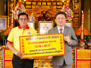 泰國潮州會館轄下嵩越路大本頭公廟於佛曆2566年8月27日(農曆七月十二日)上午九時零九分舉辦盂蘭勝會,延清華僧誦經禮懺,普渡十方無依孤魂往生極樂,賑濟廣大貧苦民眾,泰國潮州會館主席徐惠深特委派許鎮南副主席、大本頭公廟管委會主任倪武龍聯合主持盂蘭勝會儀式。許鎮南代主席在儀式上報告大本頭公廟舉辦盂蘭勝會的宗旨及詳細情況,本次盂蘭勝會共籌得善款95萬5千銖及33萬4323銖物資,合共128萬9323銖,全部用於贊助慈善團體、救濟殘疾人士、贊助學校及頒發助學金。
