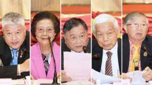 潮安同鄉會永遠榮譽理事長兼資深參議陳紹揚發言時建議各縣同鄉會在研討會上應多報告各自同鄉會的一些好人好事和成績,讓大家看到潮人在泰國創業謀生的成就。人生閱歷豐富的陳紹揚先生講述泰華僑社近百年來的往事、華人在泰謀生的艱辛發展歷程,指出漂洋過海來泰謀生者不少是靠三把刀:剃刀、剪刀、廚刀,靠手藝謀生。事業取得成功者屬於少數,而生活困難的人則要靠天華醫院、報德善堂的救濟和照顧,這正是華人團結友愛、守望相助的精神。