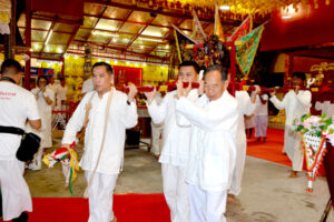 潮馆主席徐惠深应邀出席越凤拉达那喃佛寺九皇斋胜会 第一军区司令秦努蓬中将主持仪式组委会主席郑岳龙致词 资深检察官甲盛潮馆主席徐惠深章德辉董事长必耶阿喃警少将首长李创福陈运金锺木强 警上校刘树光李耀深张俊明马学光陈鸿辉郑马惠娟刘丘秋谢余淑清侯映辉吴金城社长等参加场面殊盛