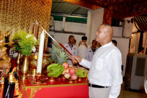 越凤拉达那喃佛寺于2023年10月19日(农历癸卯年九月初五、星期四)举办九皇斋胜会。陆军第一军区司令秦努蓬·莱诗里中将主持仪式;大会组委会主席郑岳龙致词,阐述举办九皇胜会的理念目的,旨在引导社会民众遵从宗教信仰戒律,诚心念佛诵经修身。主要目标有三:一是延续泰华祖辈传承下来的素食修身文化。第二,坚持强调授戒仪式,俾鼓励人们遵守五条戒律,促使社区氛围越来越美好友善。第三:呼吁人们联合起来,阻止和减少对动物的杀害侵犯。组委会遵照第一区域大僧长、越凤拉达那喃佛寺方丈住持拍贪越棲拉孟提上师的指导,设立一个免费素食餐厅,使寺庙周围的社区居民,在盛会期间,均有机会在佛寺食堂共进午、晚餐,为当地社区民众创造一个和睦幸福生活氛围。 为了持续发展多元文化活动,越凤佛寺于 2022 年 11 月 15 日动工建筑五营将军神庙,同年12月在神殿区域落成,开放给寺庙周围、全泰各地的华人华裔及各族民众前往晋香膜拜,以传承弘扬中华文化。越凤拉达那喃佛寺坚持每年都举办盛会活动,包括已经建立的五营将军神庙,不断改善祭坛的建设项目,以及根据泰国华侨华人的风俗习惯,添加祭拜设备。越凤拉达那喃佛寺住持拍贪越棲拉孟提上师委任郑岳龙先生为该佛寺九皇胜会组委会主席,领导开展各项工作。 2023年10月19日(星期四)下午4时半,第一军区司令秦努蓬中将、资深检察官甲盛,潮州会馆主席徐惠深,永泰隆机械有限公司董事长章德辉,组委会主席郑岳龙、郑马惠娟伉俪,移民一局长必耶阿喃警少将;侨团首长李創福、陈运金、钟木强警上校、刘树光、李耀深、张俊明、陈鸿辉、刘丘秋、谢余淑清侯映辉、马学光等分发素食饭合予社区民众。越凤拉达那喃佛寺住持拍贪越棲拉孟提上师亲自主持宗教仪式。第一军区司令秦努蓬中将主持佛祖前明烛,恭请泰国高僧诵经祈福加持;必耶阿喃警少将、首长李创福、陈运金、钟木强警上校、郑马惠娟、刘丘秋、李耀深、陈鸿辉、侯映辉等敬献佛品、袈裟予高僧。秦努蓬中将、甲盛檢察官、徐惠深主席、章德辉董事長虔诚敬献鲜花环膜拜达信大帝。秦努蓬中将敬向天地父母晋香膜拜,并在五营将军神庙明烛晋香膜拜,晋香膜拜玄天上帝。接着,甲盛檢察官晋香膜拜关圣帝君、观世音菩萨及大圣佛祖,章德辉董事長晋香膜拜财神爷、土地公。徐惠深主席主持巡游儀式。越凤佛寺住持拍贪越棲拉孟提上师赠送哪吒神像予秦努蓬中将、甲盛檢察官、徐惠深、章德辉等留念。参加盛会活动者还有:坤威实、坤匿蓬、吴金城社长、吳学聪、孙木松等数百人。 郑岳龙主席暨长官、首长、善男信女敬向五营将军神庙晋香膜拜,绕香三巡。全体参与者均获得赠送珍贵佛牌及护身符,保佑阖家平安健康发财快乐。盛会主办单位通告:2023年10月15日(星期日)至10月23日(星期一),一连九天,每天中午11:30及下午4:30,现场免费供应午、晚餐素食。欢迎广大民众、善男信女踊跃前往参加盛会活动,共结善缘,功德无量。 |
