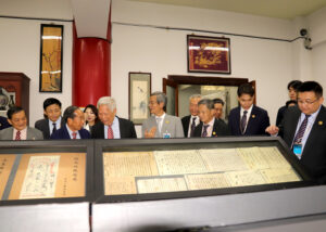 會上潮館副主席黃烈凱在發言時表達了海外華人對祖籍國深厚感情,他表示在泰經營小有成就,若代表團有意在泰興業,他將為大家提供力所能及的幫助和支持,他表示海內、外炎黃子孫將攜手推進中華民族復興。北京潮商會名譽會長陳镜亮發言時指出紅頭船,僑批等文化記憶是民族復興動力。執行會長周建軒表示潮館是泰國潮人精英,願貴吾兩會在先前建立良好基礎上持續發展。北京潮商青委會副會長陳思煒在發言時表示,潮商刻苦,耐勞,團結,誠信,合作精神,作為新生代青委會將大力發揚,傳承。文化顧問蔡少銘回憶數年前帶團在潮館獻演潮劇片段,他指出北京潮商會高度重視潮劇傳承,願潮劇文化構建更加頻繁往來。蔡文輝副會長發言時表示早年在龍湖賓館工作,接待過一批僑胞,深刻地見證僑胞對中國改革貢獻,家國情懷,會上雙方鄉賢喜悅地就更緊密攜手,推動經貿合作,中國和平統一,民族復興予以深入交流,接著賓主交換紀念品。徐惠深主席等陪同陳才雄會長一行參觀了潮館文物館,珍藏鄭皇達信收復泰國,僑批,潮館發展史見證天下潮人一家親光輝歷程。