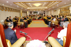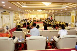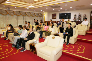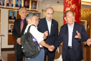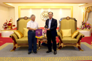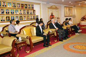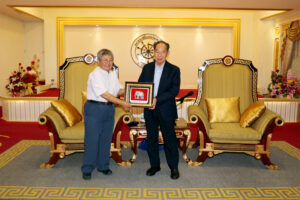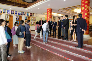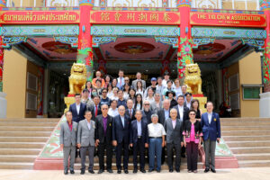 2024年6月22日上午,香港中文大學歷史系主任丁新豹博士,率領歷史系研究生一行30人,前來訪問泰國潮州會館。潮州會館徐惠深主席,中總名譽主席羅豪傑先生暨潮館諸位副主席、常務理事,給予熱情的接待。本次香港中文大學中文系研究生,前來潮州會館調查研究潮州人在泰國的發展和生活方式、風俗習慣,研究生們就潮州人移民到泰國然後在泰國怎麼發展致富,做了一系列的調研,學生們一系列的問題也得到泰國潮州會館眾位首長的一一回答,招待會再互動和友好的氣氛中完成了本次調研任務。在互送紀念品後,泰國潮州會館徐惠深主席宴請從香港來的全體貴賓,還特別準備了泰國的水果王《榴蓮》給貴賓們品嘗,招待會圓滿結束後,貴賓們再次啟程了他們下一站的活動!