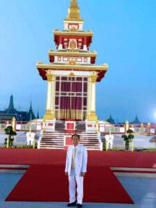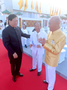 12月4日中午,應泰國政府邀請,為慶祝泰國國王哇集拉隆功七十二聖壽和2025年中泰建交50周年,北京靈光寺佛牙舍利抵達泰國供奉。泰國副總理兼交通部長素裏亞在曼谷廊曼軍用機場主持佛牙舍利迎請儀式。下午,佛牙舍利赴曼谷市內舉行花車巡遊,並抵達王家田廣場安奉,泰國總理佩通坦在王家田廣場主持了佛牙舍利安奉儀式。儀式後,泰國僧王抵達,向佛牙舍利敬獻供養。中共中央統戰部副部長、國家宗教事務局局長陳瑞峰,中國駐泰國大使韓志強,中國佛教協會會長演覺,以及泰國總理佩通坦,副總理兼國防部長普坦,副總理兼交通部長素裏亞,國務部長初薩、吉拉蓬,外交部長瑪裏,旅遊與體育部長索拉翁,商業部長披猜,文化部長素達婉、泰國潮州會館主席徐惠深等中泰嘉賓出席了活動,。