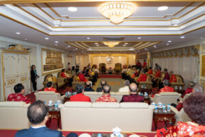 吳志武公使用潮語向大家祝新春大吉,蛇年興興!潮館徐光輝副主席致辭時祝韓大使等長官為中泰一家親作出更大貢獻,祝福祖國繁榮富強,早日實現和平統一。韓志強大使代表大使館向潮館徐惠深主席贈送了福到春聯,吉祥蛇。徐惠深主席代表潮館向韓大使贈送新春大吉,祝新正如意,蛇年吉祥。最後賓主合影留念。