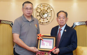 2025年6月13日下午二時,檳城潮陽同鄉會代表團一行九人在會務顧問拿督朱章明、主席拿督林安宇的率領下,蒞臨泰國潮州會館進行友好訪問,受到泰國潮州會館主席徐惠深及諸位副主席、常執委的熱烈歡迎,並在二樓朝鎮廳進行友好會談,共同探討潮汕文化的傳承與兩國潮籍社團的合作前景。此次訪問不僅加深了雙方友誼,還為未來在文化交流與合作奠定基礎。