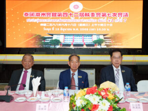 2025年6月18日上午,泰國潮州會館第42屆常執委會第七次會議,在本館子彬大禮堂隆重召開,徐惠深主席致開會詞,廖令金副主席作財務報告,吳學聰總幹事報告會務活動,執委會近.百人踴躍參加會議!徐惠深主席登臺為新任名譽主席李惠城先生,執委方錦炎先生頒發請任書,午餐後,徐惠深主席宣佈本次會議圓滿成功,閉會!