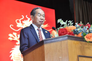 第27屆劉漢明理事長致詞略謂:尊敬的各位僑團首長,各位貴賓,宗亲們大家好!今天我們歡聚一堂,共同見證泰國劉氏宗親總會第28屆理事會就職典禮的隆重舉行。感到非常高興。轉眼間我的理事長任期已至屆滿。在此,我懷著無比感恩的心情向大家致以最誠摯的感謝!回首過去的任期,我深感榮幸能與各位攜手同行,在大家的鼎力支持下,我們圓滿完成了各項會務,首先我要感謝全體會員的信任與支持。是你們的鼓勵,讓我在任期內能夠充滿信心地履行職責。每一次的會議,每一次的活動,都因你們的積極參與而充滿活力與意義。