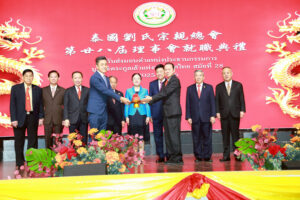 泰國劉氏宗親總會第28屆理事會就職典禮,擇吉於2025年7月26日上午,假潮州會館子彬大禮堂舉行,劉漢明理事長功成讓賢榮陞永遠榮譽理事長,大會主席劉秉青永遠榮譽理事長主持就典禮,劉霽緯眾望所歸接帥印就任理事長,出席見證,祝賀嘉賓有:中國駐泰大使館公參兼總領事潘瑾,柳少澤一等秘書,前副總理劉鴻宇,前警指揮威昌警上將,他威塞.杜真拉上將,中總主席林楚欽博士,副主席李桂雄,陳錫源,蕭漢銘,歐先梓,潮館徐惠深主席,榮譽主席王金國王吳金鳳賢伉儷,副主席李創福,鍾燦峰博士,蔡蔚生,徐金亮,常務秘書鄭惠中,羅煒達,陳焯輝,常務財政陳文強等,宗聯主席黃漢良博士暨王創業,張鎮松,趙楚民,許景杓,溫沙南,周嬋琴,顏瓊瑛,郭明忠,沈木盛等,中華贈醫所馬文清理事長,准理事長陳焯輝,張鎮松,蔡偉民等,廣肇會館馬燦利理事長,廣肇商會理事長潘詔詠,泰華進出口商會諸首長鄭岳龍,林齊銳,黃暢亮,鄭定沛,鄭偉中,李耀深,馬逸群,黃松發,吳金城,蕭松如,徐建立,蔡偉民,孫木松等,該會諸首長劉錦庭教授,劉樹英,劉先飛,劉樹光,劉秉坤,劉炳榮,劉玉環,劉國強,劉振民,劉錦武,劉睦陸,劉錦龍,劉裕輝,劉長有,劉金城,劉明榮,劉少翁,劉邦耀,劉蓬塞,劉華源,劉少川,劉德忠,劉德雄等,內地各府清邁,帕,彭世洛,信武里,大城,猜納等各府,桂林南岡公,藍田,楊美鄉,橫隴,溪口,港頭等家族會代表、宗親,龍岡親義總會四姓世誼,蓬萊五逍閣諸首長等逾600人出席,見證劉氏宗親總會第28屆理事會就職典禮。
