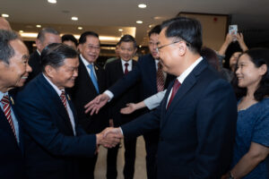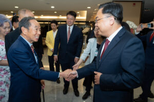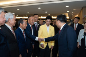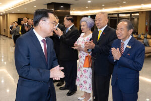 2025年7月29日下午,泰國潮州會館徐惠深主席暨諸首長,前往素旺那普國際機場貴賓室,迎接中華人民共和國駐泰王國大使館新任大使張建衛閣下暨苗海燕夫人!下午18.30分,素旺那普機場前往貴賓室的通道擠滿了泰國華人華僑及各單位的首長和代表,前來迎接中國大使館新大使暨夫人,以睹新大使張建衛閣下的風彩,張大使抵達貴賓室時,受到潮州會館徐惠深主席暨諸位副主席的熱情接待,張大使跟徐惠深主熱情的握手,徐主席說,歡迎張大使和夫人前來泰國就任,並邀請張大使前來潮館指導工作,隨後、向張大使獻上祝福的鮮花!