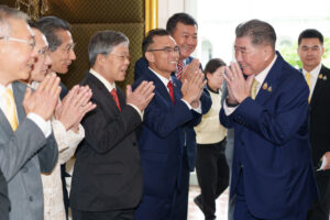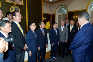 2025年7月31日上午,泰國潮州會館徐惠深主席暨副主席邱燕桂、孫石波、李創福、鍾木強、徐永添、廖令金、方松堅、方成達;常務交際陳哲思;泰國客家總會黄建華理事長;泰國廣肇會館馬燦利理事長;泰國海南會館李隆本樁理事長;泰國福建會館林少懷代理事長;泰國江浙會館邱燁執行理事長;泰國台灣會館王載麟代主席;泰國雲南會館劉德明理事長;泰國廣西總會陳宏錦主席;泰華九屬會館陳俞龍秘書長;總幹事吳學聰;總幹事助理羅亨;海南總幹事韓璿玉、台灣總幹事徐硯庭等前往泰國內政部晉謁泰國代理總兼內政部長普普坦‧威乍耶猜閣下並移交援助資金。希望通過這次捐贈,讓他們感受到來自人民的溫暖與力量,讓他們在艱苦的環境中倍感振奮,繼續肩負起保護國家的重任。泰國内政部晉謁泰國代理總兼內政部長普坦‧威乍耶猜閣下代表泰國政府感謝泰國潮州會館、泰華九屬會館、各縣同鄉會諸首長對國家做出的貢獻,為全體將士送去支持與鼓勵,表示將儘快把該款項移交至前線,將溫暖送至每一位士兵及受影響人民手中。