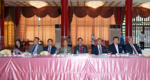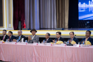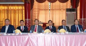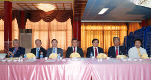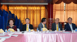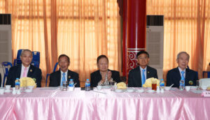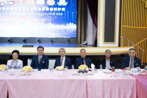 會上潮安同鄉會陳英全代理事長致詞時表示:潮館暨各縣首長聚餐研討會凝聚鄉情,展現和衷共濟,攜手合作精神,本人支持徐惠深主席暨常執委會關於改建越隆山莊為公園設立潮州人文化博物館計劃。會上潮陽同鄉會章德輝代理事長,揭陽會館徐炎光理事長,普寧同鄉會陳和年代理事長,澄海同鄉會陳焯輝理事長,大埔會館餘業代理事長,豐順會館徐永添主席,饒平同鄉會莊曉典代理事長,惠來同鄉會方松堅理事長分別先後致詞簡介各自會館近期會務活動,就聯合事務發展發表意見。潮館總幹事吳學聰作潮館暨各縣同鄉會聯合財務進支概況報告,作聯合會務活動報告(有資料)。吳學聰總幹事並報告由中總,潮館聯合各僑團於11月20日至26日舉辦湄州媽祖蒞泰巡安活動得到潮館榮譽主席王國金王吳金鳳賢伉儷大力支持,特供1500件印有媽祖巡安襯衫。報告大本頭公廟將於8月24日舉辦盂蘭勝會,報告會館將於9月15日上午舉辦常年盂蘭勝會,祈盼大家捐款支持。會上名譽主席陳志鴻博士作關於美國關稅戰對泰國經濟發展前景影響報告,建議企業家審時渡勢作好相關保護措施。並簡介日前寵蒙皇上陛下禦賜頒發證書榮任詩納卡輦大學校董會主席,深感皇恩浩蕩,願為教育事業盡一份綿薄力量,獲與會首長掌聲祝賀。在完成各項議程後,徐惠深主席宣佈閉會。