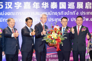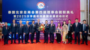 2025年8月23日晚,潮州會館代主席鄭岳龍先生暨諸首長,前往光華堂,出席泰國北京總商會第四屆理事會就職典禮,姚華星先生眾望所歸,當選為第四屆理事會理事長!本次就職典禮得到中國大使館,各僑團首長的大力支持!鄭岳龍代主席登致詞並獻花祝賀典禮儀式在文藝表演與豐盛的晚餐後,圓滿結束!