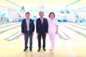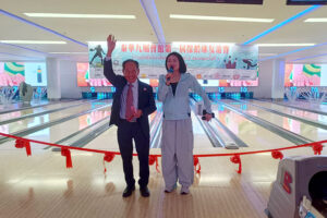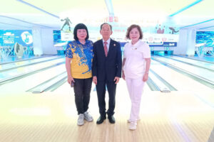 2025年9月14日下午,潮州會館徐惠深主席前往Mega Bangna 大商場,出席泰華九屬會館第一屆保齡球友誼賽,本次由台灣會館張玲琴理事長主辦,徐惠深主席參加開幕式並致詞!