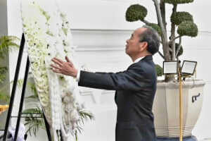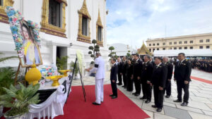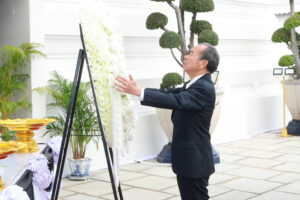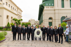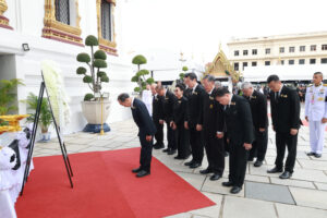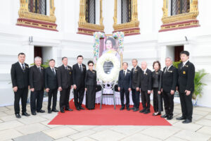 2025年11月19日上午,潮州會館徐惠深主席暨諸首長前往大皇宮,帶領各位常執委在皇太后的聖靈前跪拜,並獻上花圈,以表泰國華人華僑對皇室的忠誠與尊敬!