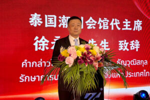 2025年12月3日晚上,泰國潮州會館代主席徐永添先生暨諸首長前往北欖黃金帝國酒店出席酒店開業剪綵儀式暨泰中華商會第三屆理事會就職典禮。徐永添代主席代表潮館登臺致辭並共同見證新屆理事會的誕生
