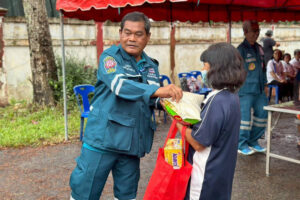 座談結束後,雙方舉行捐贈儀式,由徐惠深主席代表泰國潮州會館正式移交一百七十萬銖善款,由高梧桐博士接領。該筆善款已全數購買物資分裝成三千四百套完成裝車。
